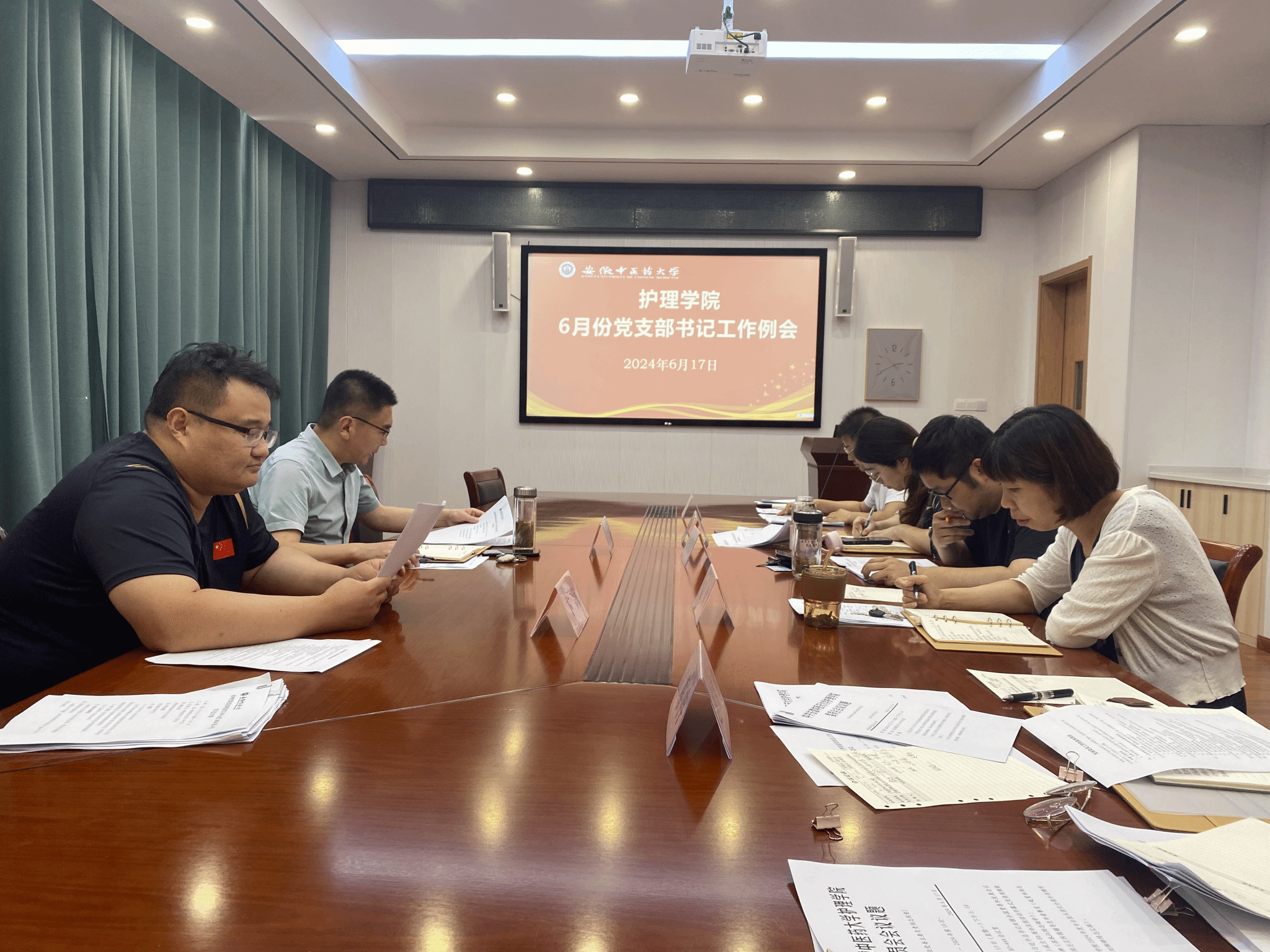 会议传达学习了公司6月份二级党组织书记工作例会会议精神,并就党支部优质化建设年工作进行调度推动。会议强调,要认真落实立德树人根本任务,进一步聚焦一流中医药大学建设目标,持续提升党支部内涵建设水平,持续深化“一支部一特色”党建品牌创建,不断强化基层党支部政治功能和组织功能,为公司高质量发展提供坚强保障。