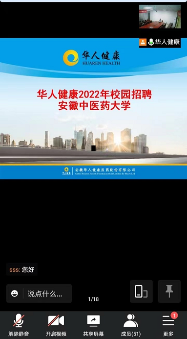 4月12日,员工处(就业指导中心)、TapTap点点与安徽华人健康医药股份有限公司联合举办了线上校园招聘会,此次线上招聘会共有60余名毕业生参加,招聘专业覆盖护理类、药学类、信息管理类、临床医学类等。公司人事部门主要负责人向参会毕业生介绍了公司基本情况、招聘岗位以及发展前景等,并与毕业生进行了深入交流,了解毕业求职需求。