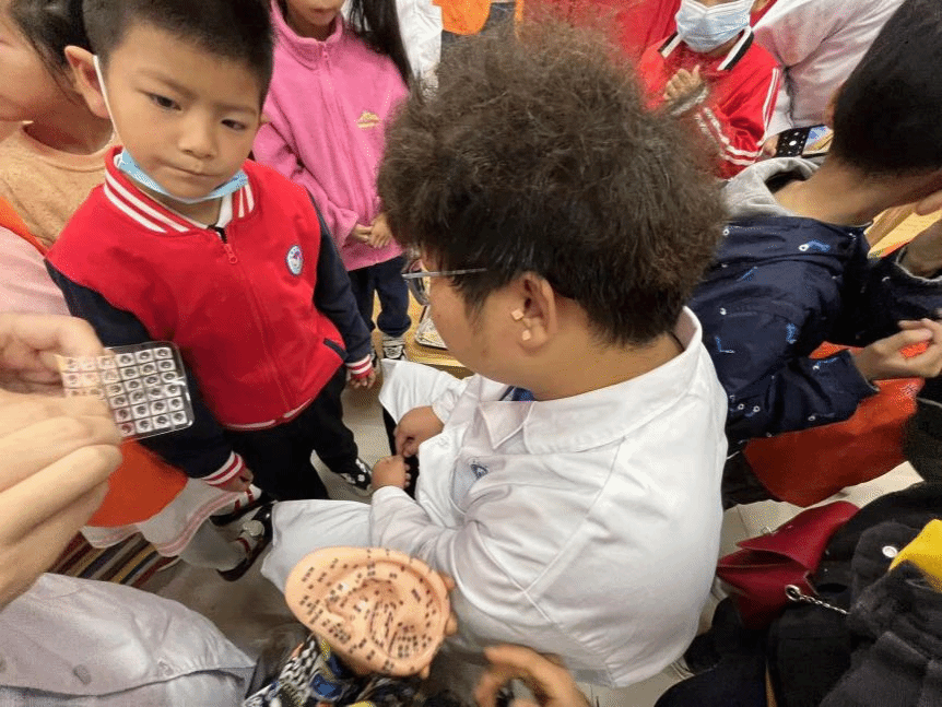 本活动内容主要有“眼睛基本常识科普”、“视力表检查视力”、“规范眼保健操动作”、“耳穴埋豆介绍”。同学们将医学知识理论与日常生活实例相结合,通过PPT展示、现场实操、游戏互动、设问设答等方式向社区青少年介绍了保护自己眼睛的重要性。同时引入了中医传统文化--耳穴埋豆,向家长们介绍了保护眼睛的耳部穴位,讲解耳穴埋豆的操作步骤,并指导小朋友们进行操作演示。活动得到了员工、家长和社区工作人员的一致好评。