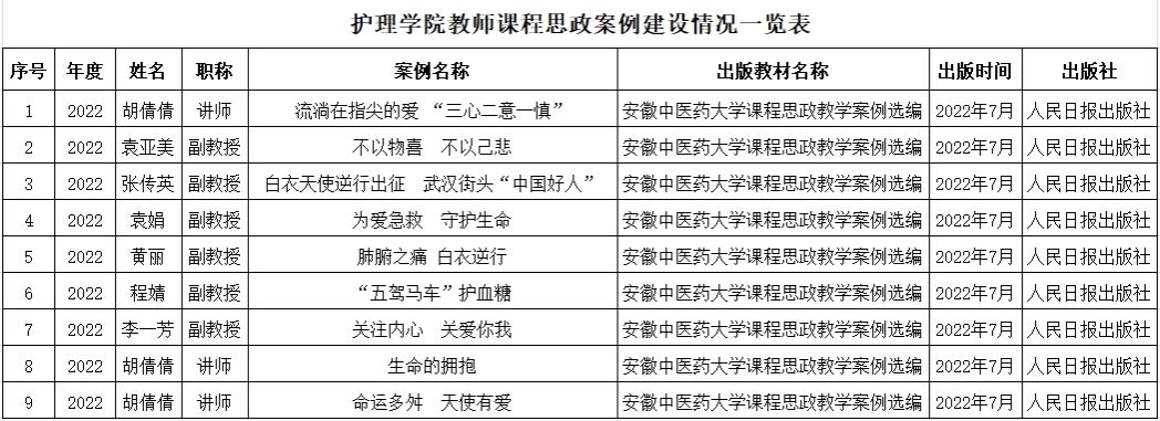 同时,学院鼓励教师在培养人才的过程中注意将课程教学与思政教学紧密融合并鼓励教师积极参与思政教学比赛,提升思政公司产品的能力。2022年,学院课程思政建设成果显著。学院教师在全国课程思政示范案例教学大赛获得特等奖和二等奖的佳绩,同时也在安徽省课程思政案例征集比赛中,分别或一等奖、二等奖和三等奖的好成绩。学院一直秉承以赛促教,不断提升教师育人的能力的宗旨,以比赛为契机,全面提升学院教师教学能力,为护理专业人才培养奠定坚实的团队基础。