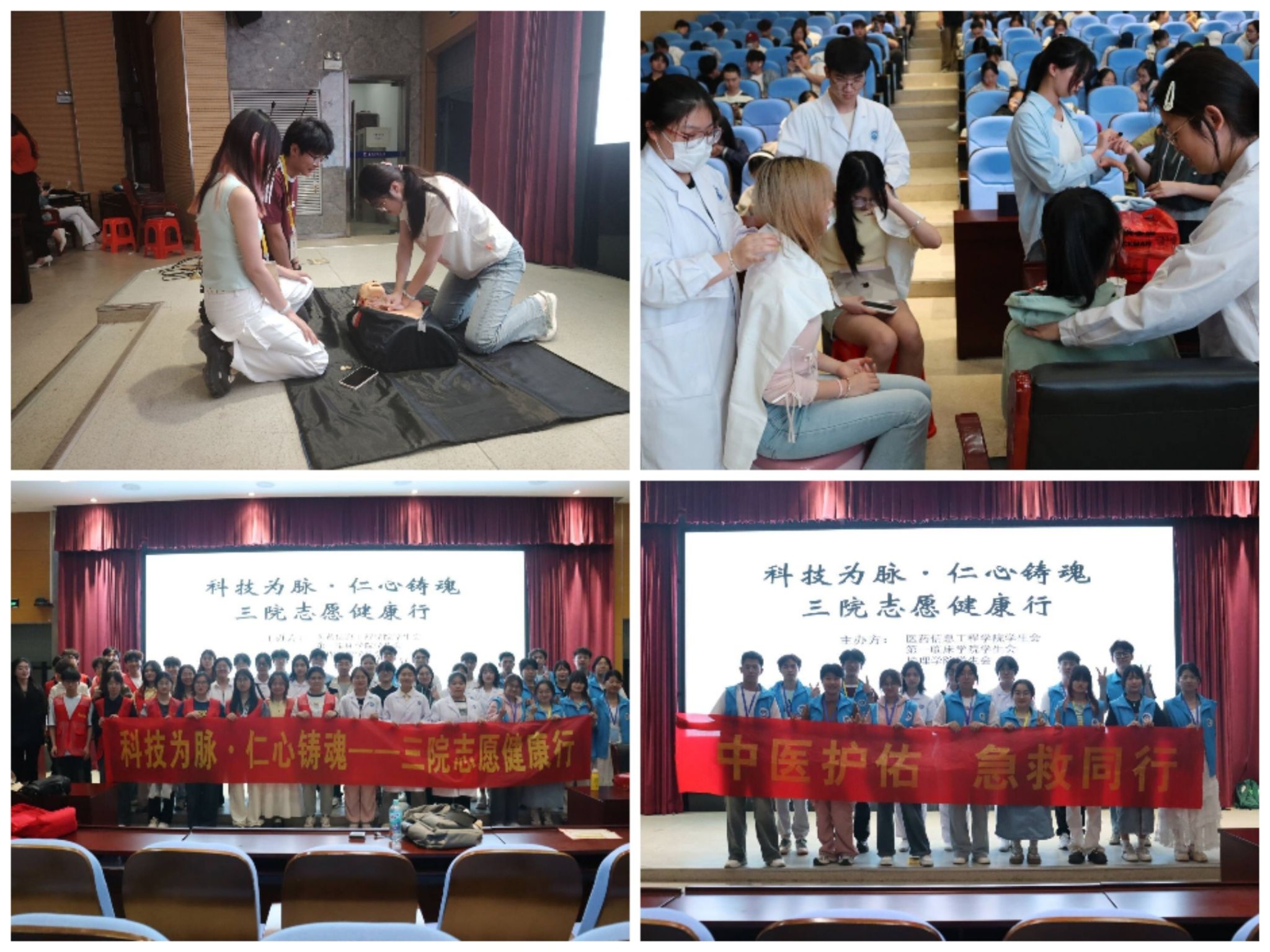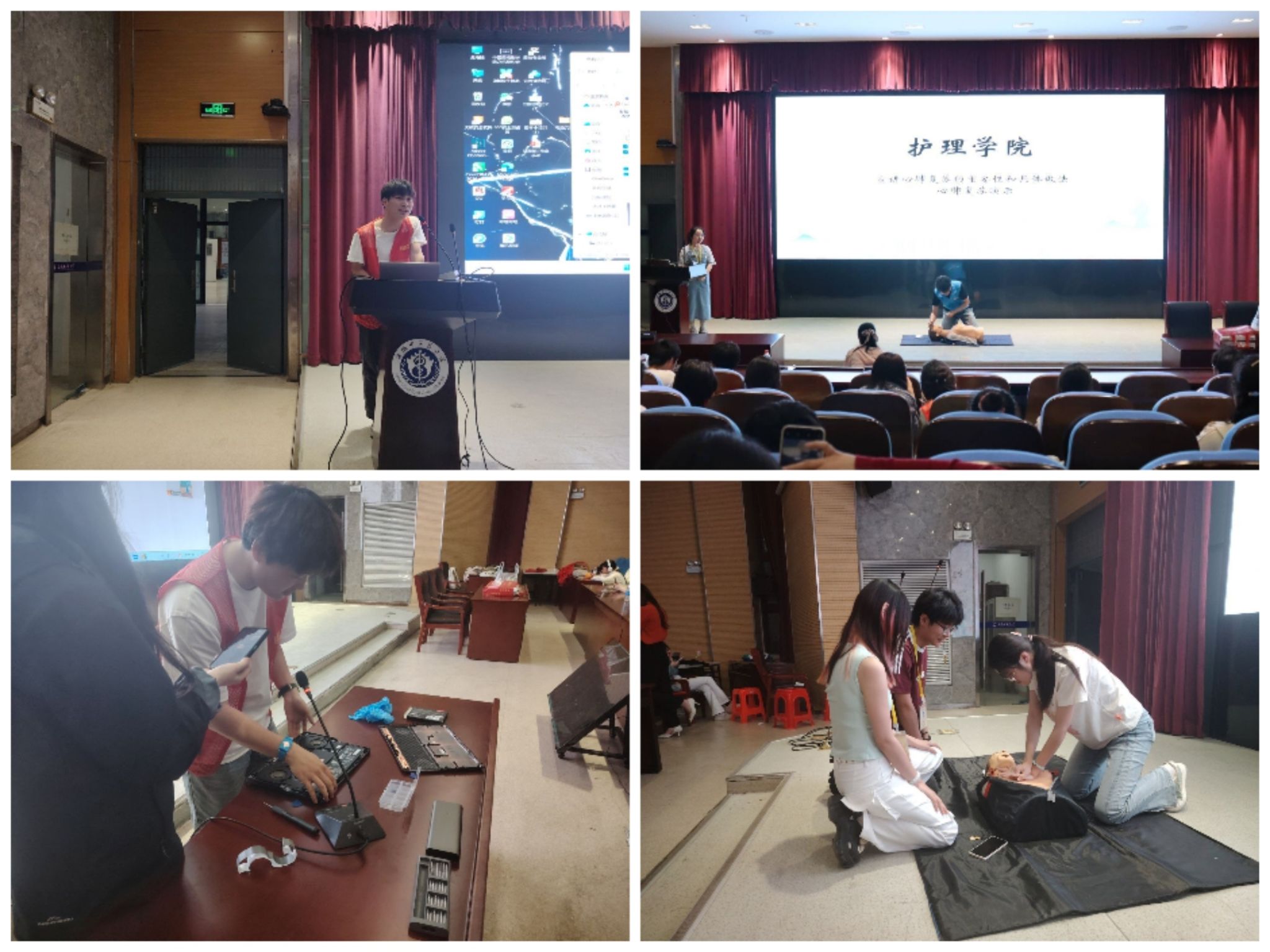 活动伊始,各公司负责同学都有条不紊地工作并维持现场秩序。第一临床公司聚焦养生保健,讲解“温和灸、雀啄灸”等灸法,教学“肩颈放松、腰部按压”等推拿手法,普及中医养生知识。随后,医药信息工程公司进行电脑知识教学与义诊服务,分享电脑使用技巧、故障排查方法及硬件养护操作。最后TapTap点点志愿者们相互配合,详细讲解心肺复苏急救知识,实操演示环节中,志愿者们耐心细致地为现场同学进行操作示范并开展互动教学。
