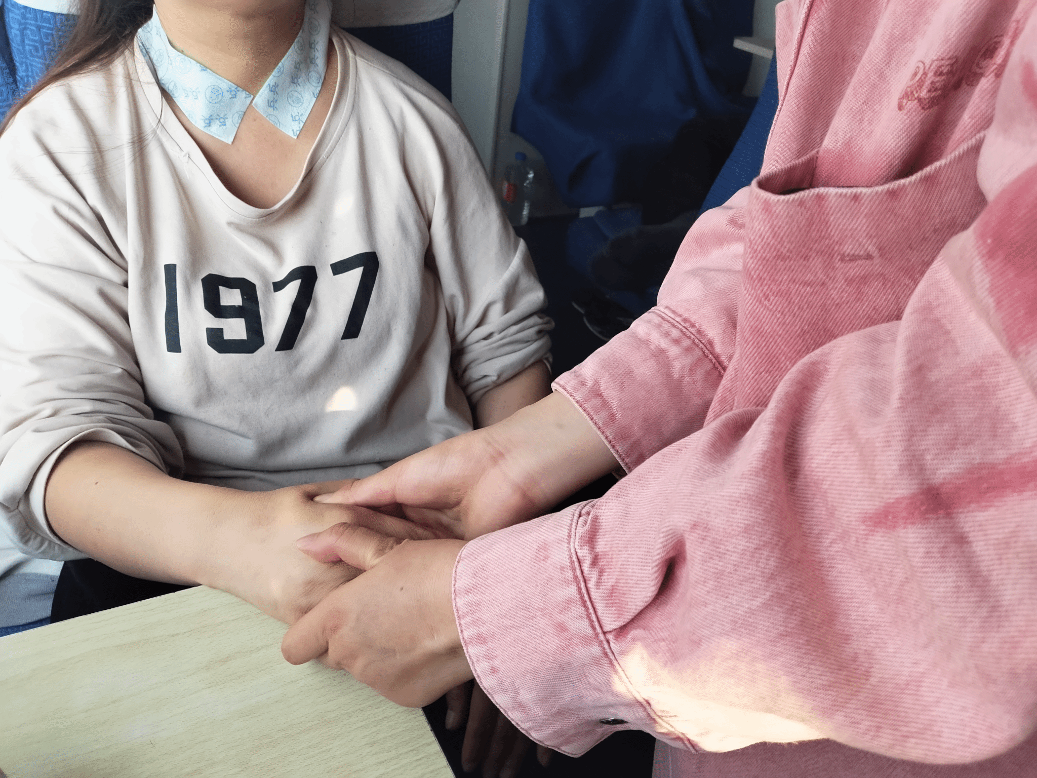据列车长回忆,下午16时20分左右,K2276次列车驶离始发站不久,16号车厢一位阿姨突发急症,主诉恶心呕吐,并伴有发热和头痛等不适症状。由于列车距离下一停靠站芜湖尚有2小时车程。列车长当机立断启动紧急预案,通过广播三次呼叫医护人员。此时,在13号车厢的2022级护理学专业员工石晓兴和钮云珠在听到广播后,决定立即前往支援。