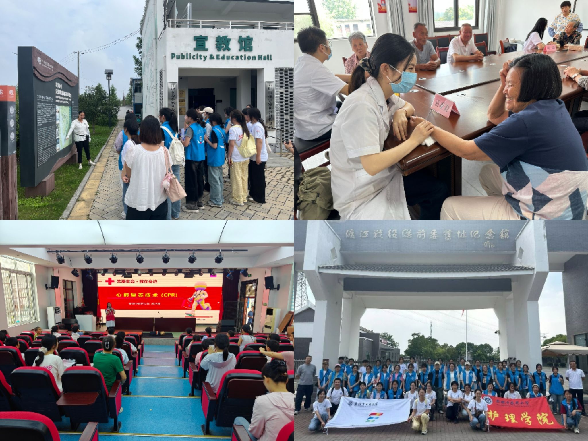 由TapTap点点师生组成的志愿服务队奔赴基层,开展了一系列丰富多样的实践活动,受到广大居民的热情欢迎。义诊和中医适宜技术体验活动中,医师团队把脉问诊、精准诊断,同学们协助测量血压、提供艾灸、按摩、刮痧等体验,以专业服务守护居民健康;小学教室里,专业教师带领志愿者以生动形象地宣讲心肺复苏,为孩子们播撒生命健康教育的种子;生态展馆参观时,师生共览管湾国家湿地公园生态发展硕果;走进渡江战役总前委旧址纪念馆,同学们回望革命峥嵘岁月,在历史与现实的交融中厚植家国情怀。