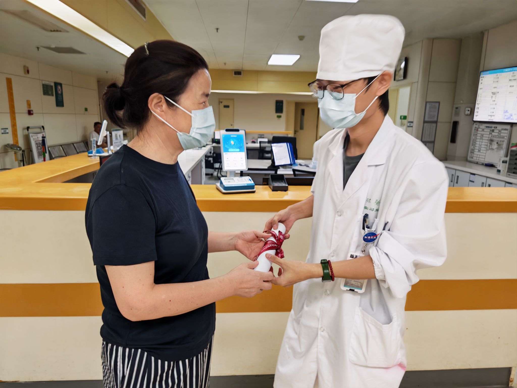 当日傍晚,方嘉鑫刚刚结束下午实习工作,正欲外出就餐,途径住院大厅时突然听到呼救声,他毫不犹豫冲上前去,迅速跪地检查患者体征,表明实习护生身份后,他一边安抚家属情绪,一边查验患者手腕带,发现其为肾内科住院患者。根据患者意识尚存但周身乏力、面色苍白的症状,方嘉鑫初步判断其为严重低血糖反应。