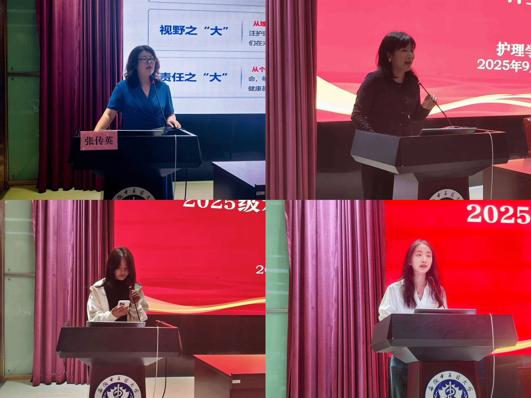 在师生代表发言环节,教师代表以“匠心、人心、恒心”为主题,阐释了一名优秀护理工作者应具备的核心素养——以匠心锤炼专业,以人心传递温度,以恒心坚守使命,为同学们指明了职业成长方向。老生代表以学姐的身份,热情欢迎新同学的加入,并结合自身经历,分享了大学学习与生活的真切感悟,为新生尽快适应大公司园生活提供了宝贵经验。新生代表郑重承诺,将以饱满的热情和不懈的努力开启大学新篇章,不负时代,不负韶华。