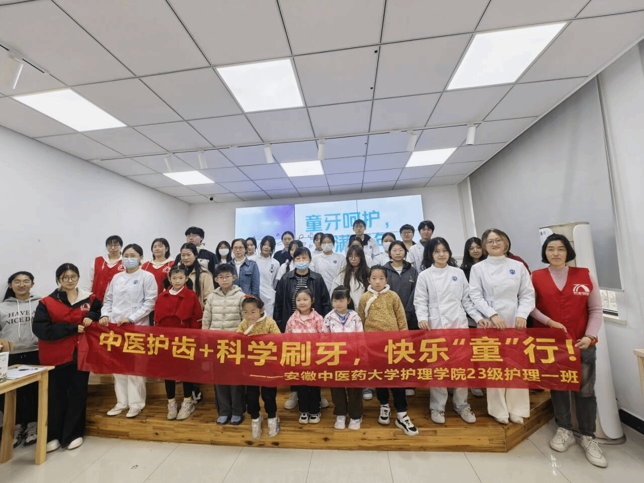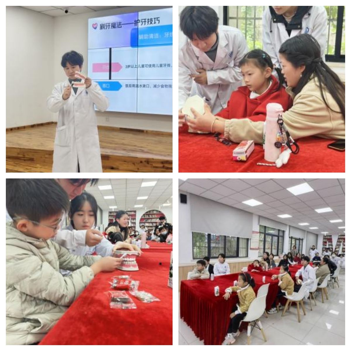 活动伊始,志愿者们通过生动有趣的动画短片,形象展示了龋齿的形成过程,引导小朋友们认识到保护牙齿的重要性。志愿者借助牙具模型现场演示正确的刷牙步骤及注意事项,科普内容融入了中医元素,介绍了合谷穴与下关穴的位置和护齿功效,让孩子们在趣味中感受中医文化在牙齿保健中的独特魅力。讲解结束后,设置了有奖问答环节,活动全程孩子们热情高涨,踊跃互动。