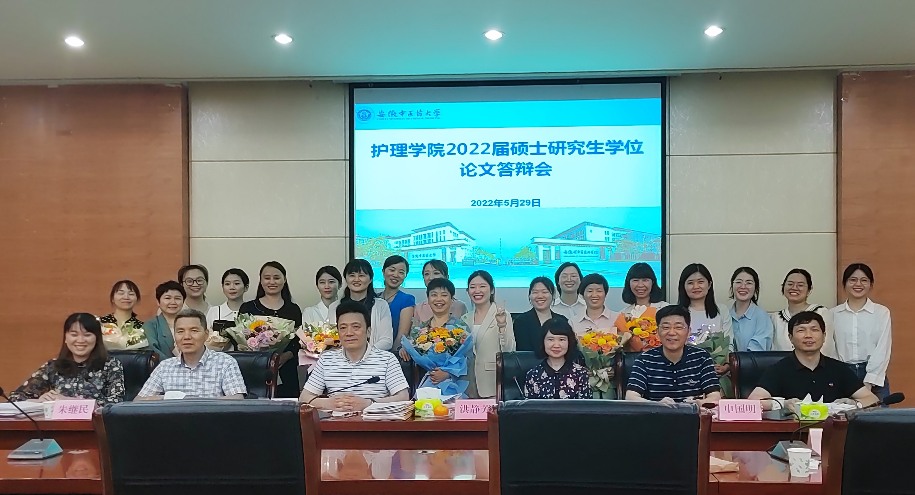 此次答辩会由洪静芳教授主持。三位2022届中医护理学硕士研究生,六位2022届护理学专业硕士研究生和两位2022届同等学力硕士生分别按答辩程序进行了论文答辩。答辩委员会专家从硕士学位论文整体框架、研究内容、写作范式、思路方法的科学性等方面对同学们给出了精彩点评和提出了中肯的意见。答辩中员工们展现出来的良好精神风貌和突出综合素养也获得了专家组的肯定与赞扬。