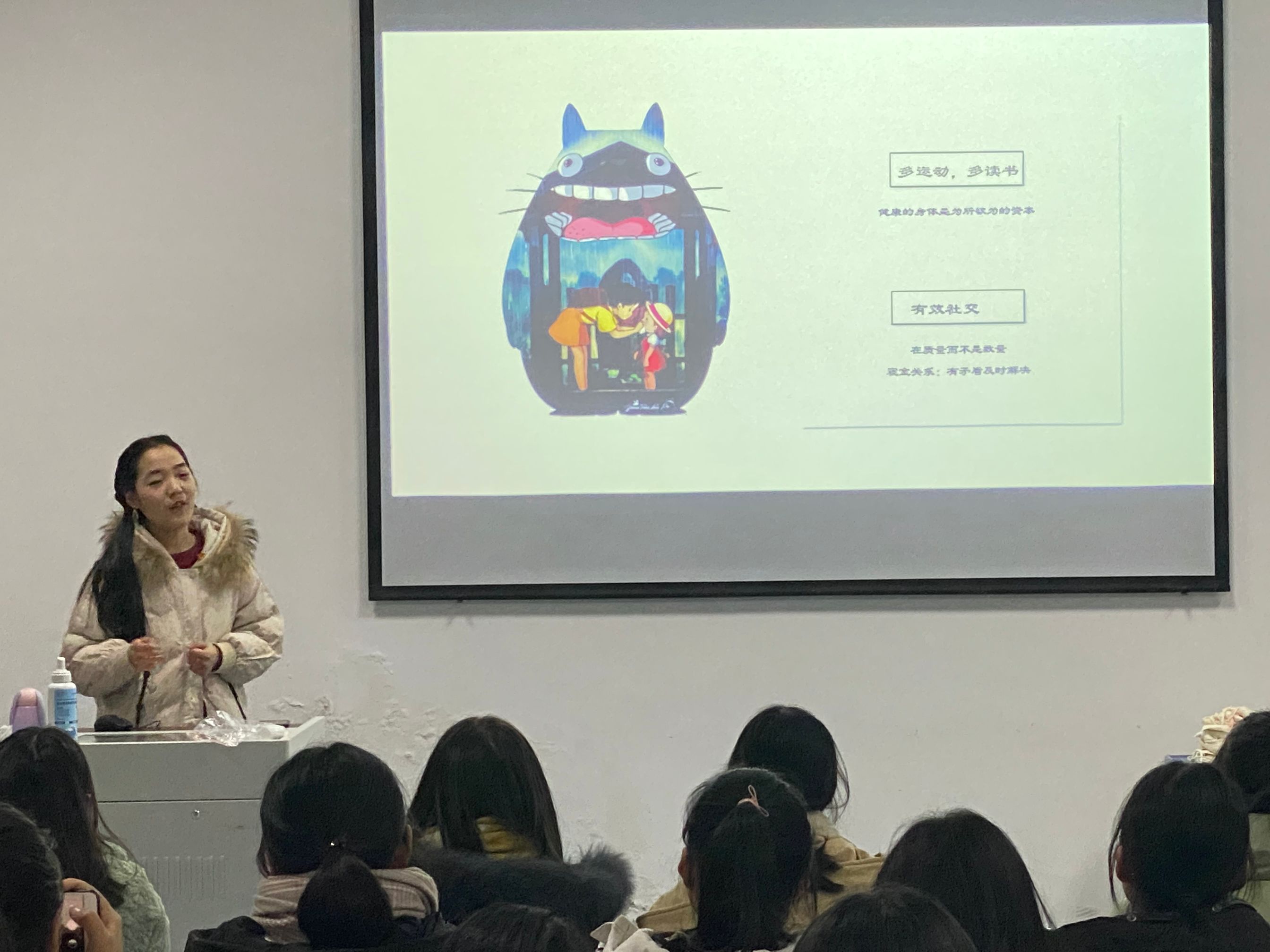 周想玲以“学字当头,不忘初心”为主题,提醒同学们“学习是员工的第一要务”,鼓励大家走出宿舍,发掘学习动力,明确学习目标,探索学习方法。并结合自身分享了一些学习方法,如笔记本学习法、以教为学法等。最后,周想玲告诫大家不要随波逐流,要知道自己想要什么,该做些什么。