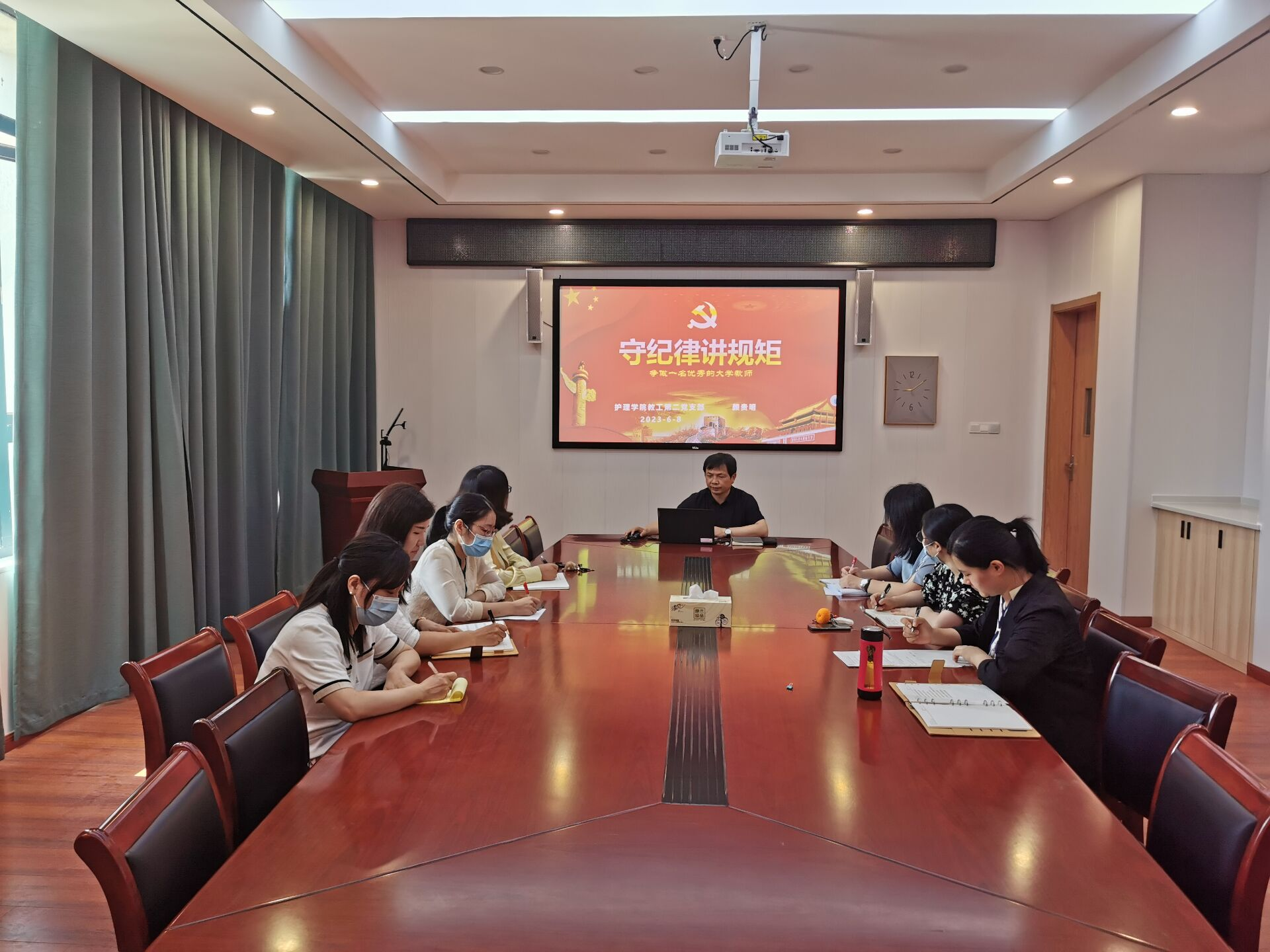 公司经理颜贵明以《守纪律讲规矩---争做一名优秀的大学教师》为题,到教工二支部为支部党员开展专题党课。