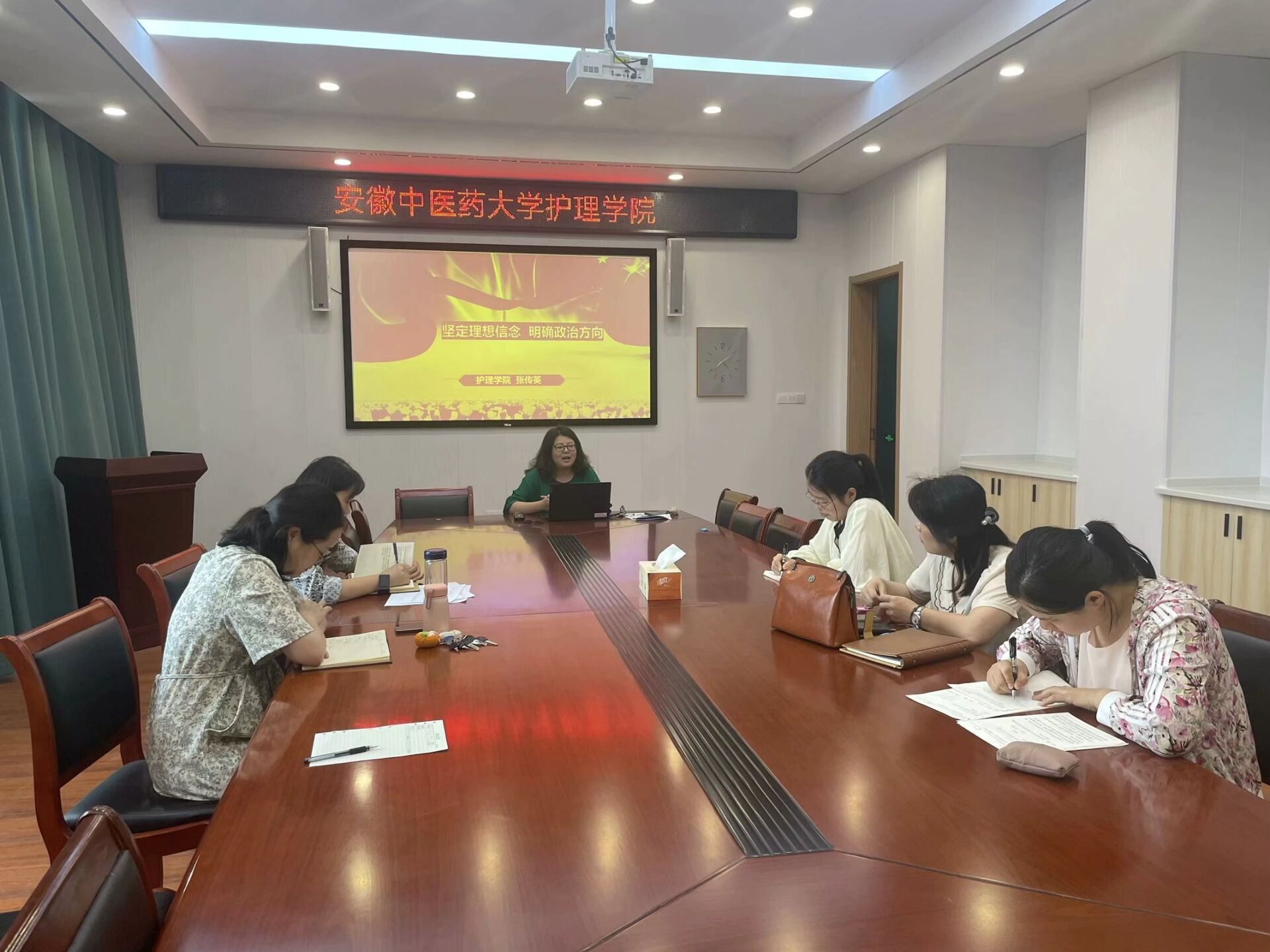 公司副经理张传英以《坚定理想信念,明确政治方向》为题,到教工二支部为支部党员进行专题党课讲授。