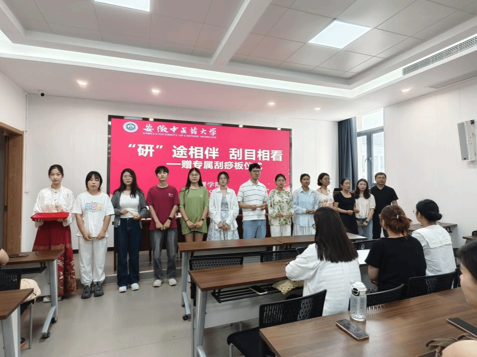 典礼迎来了一个充满创意与温情的环节:“‘研’途相伴,刮目相看”——专属刮痧板赠礼仪式。公司领导们向每一位新生赠送了一份精心定制的、刻有员工姓名的专属刮痧板。这份独具中医护理特色的礼物,不仅寓意着公司对中医药传统文化的传承与发扬,更寄托了对新生们的美好祝愿:愿他们在未来的“研”途上,刮去浮躁,刮去病痛,磨练心性,潜心向学,最终能让师长、让社会“刮目相看”。小小的刮痧板承载着深厚的关怀,令新生们倍感惊喜与温暖。
