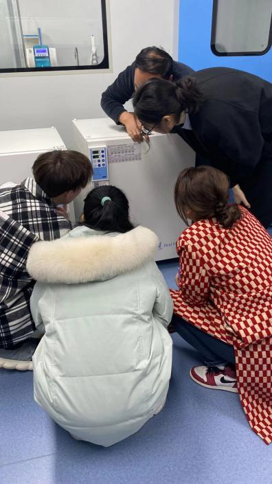 工程师详细介绍了倒置荧光显微镜、离心机、二氧化碳培养箱、三气培养箱、纯水机等新进仪器设备的硬件配置、样品前处理方法、上机操作、注意事项、数据处理等内容。培训中,员工们认真听讲、积极操作实践,熟悉了细胞房常用仪器设备操作流程。张传英副经理特别强调了设备在使用过程中可能存在的安全隐患,强化同学们实验室安全意识。
