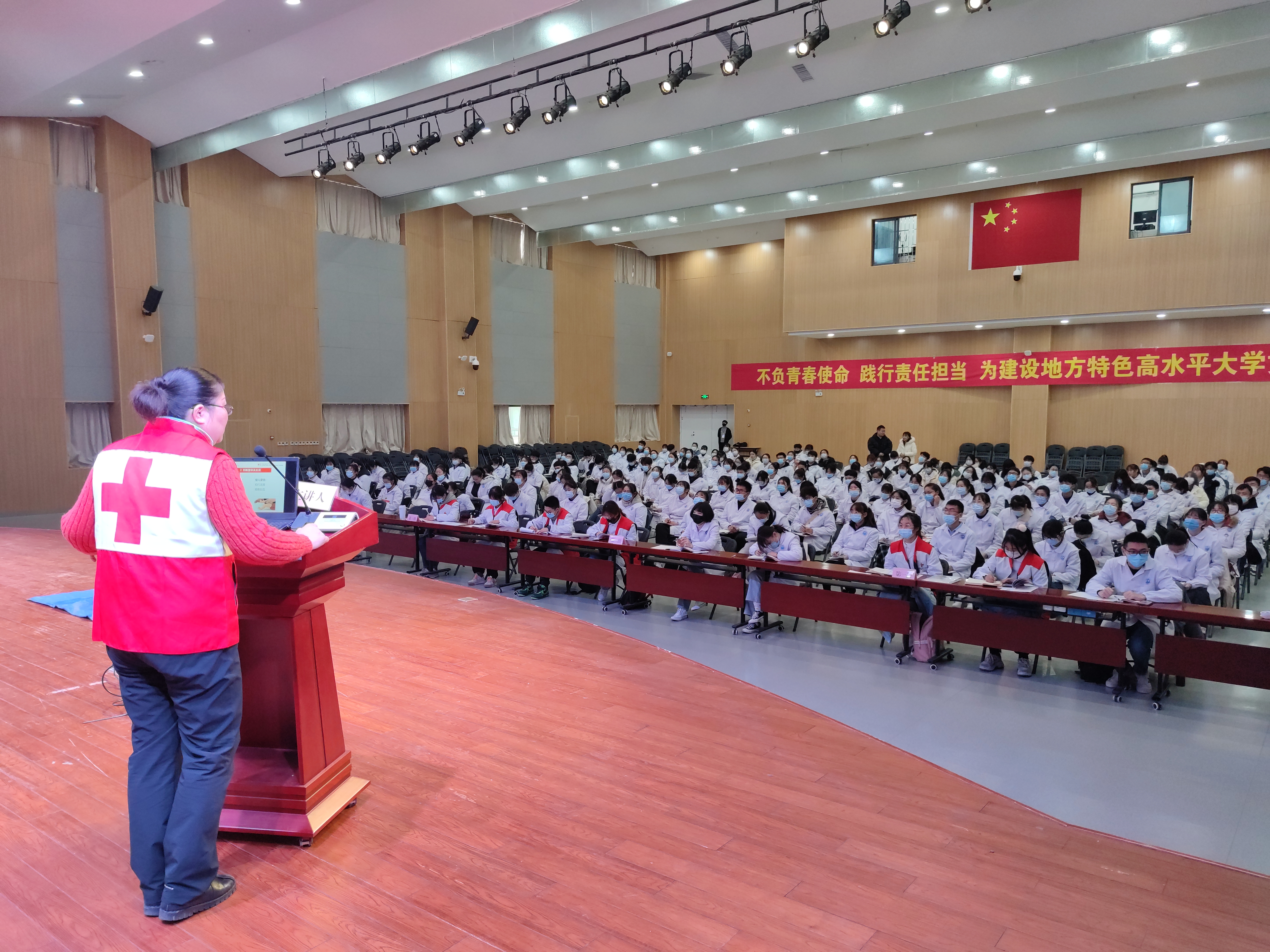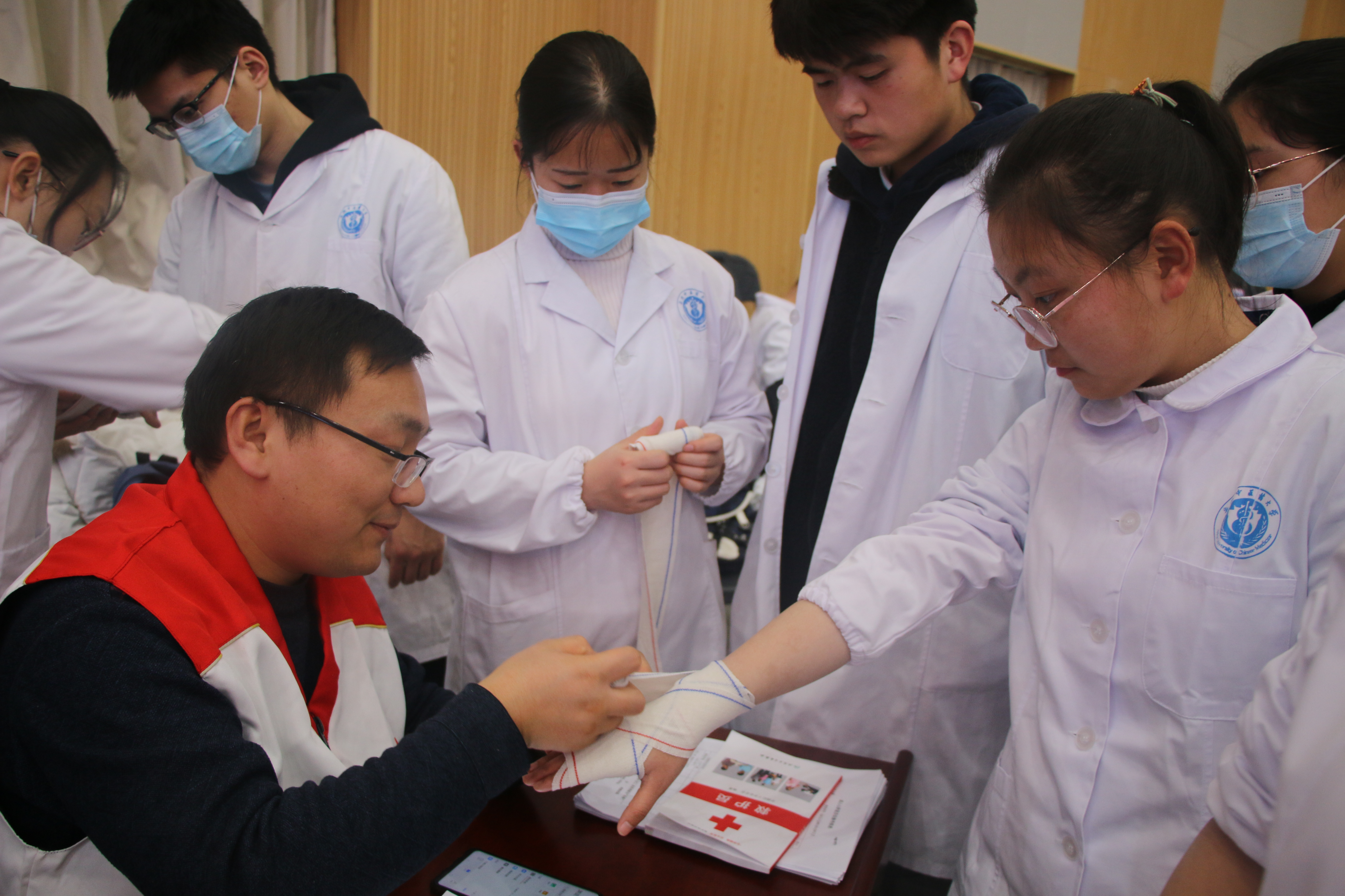 本次培训主题为“‘医’路有我,‘救’在身边”,主要内容为心肺复苏、创伤救护的基本知识技能以及常见急症、意外伤害等突发情况的处置要领。主讲人从红十字运动的起源和发展着眼,将院前急救同人道、博爱、奉献的红十字精神相结合,在教授专业知识技能的过程中,引导同学们将志愿精神内化于心、外化于行,通过自己的专业技能践行社会主义核心价值观。经过为期一天的理论课程学习实训操作练习,全体学员均顺利通过考核