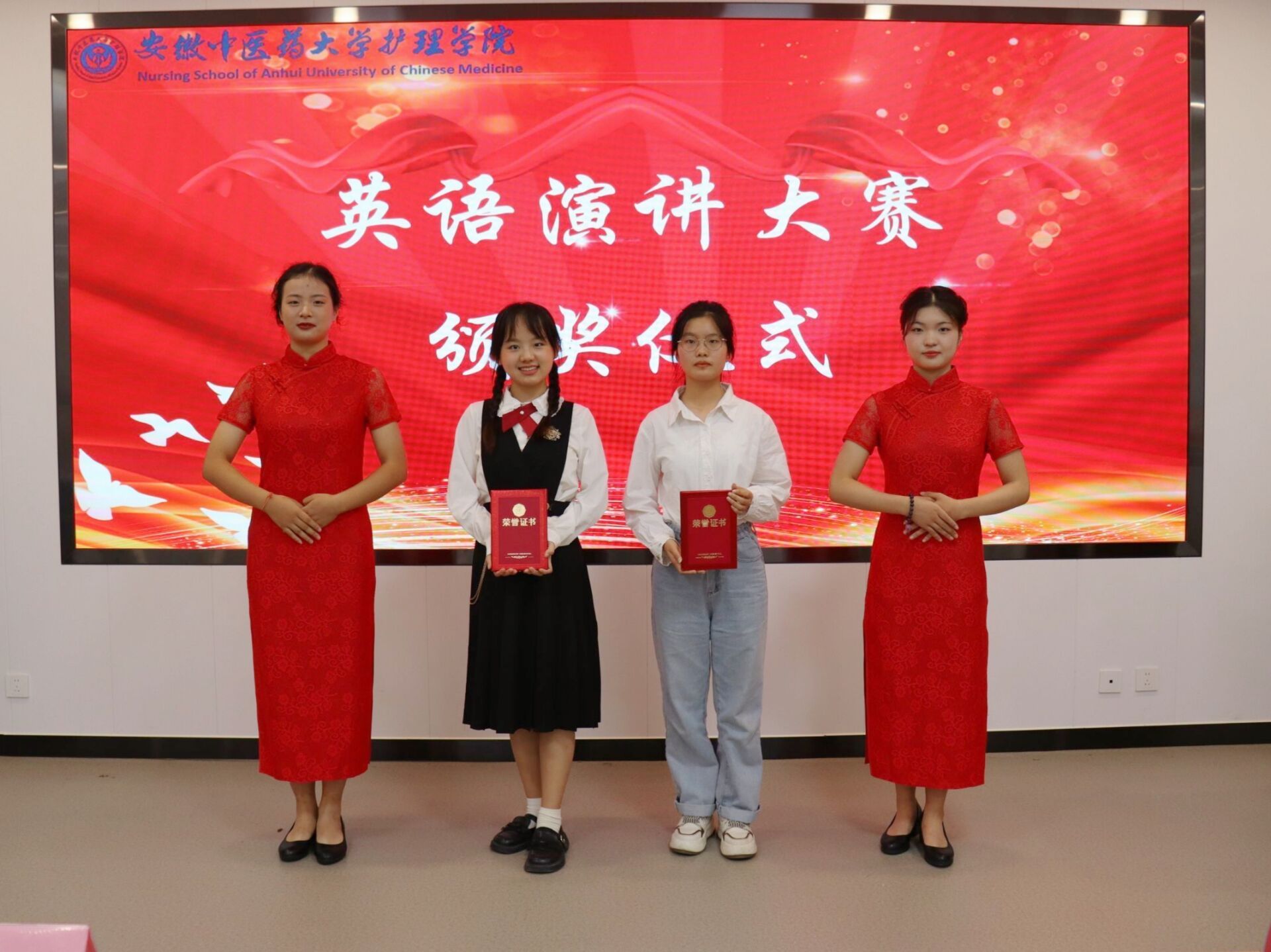 本次选拔赛邀请人文与国际教育交流公司朱家胜老师和TapTap点点的王校老师、朱宇老师、李一芳老师以及葛婕婕老师作为评委,以“The Chinese Path to Modernization”为主题。在比赛过程中,参赛选手们神采飞扬,脸上挂着自信的笑容,用慷慨激昂的口语演讲吸引着在场的评委,赢得了阵阵掌声,展现出了自己的独特魅力。经过激烈的角逐后,21级护理6班姜珊和22级护理4班梅可在比赛中脱颖而出,荣获一等奖。