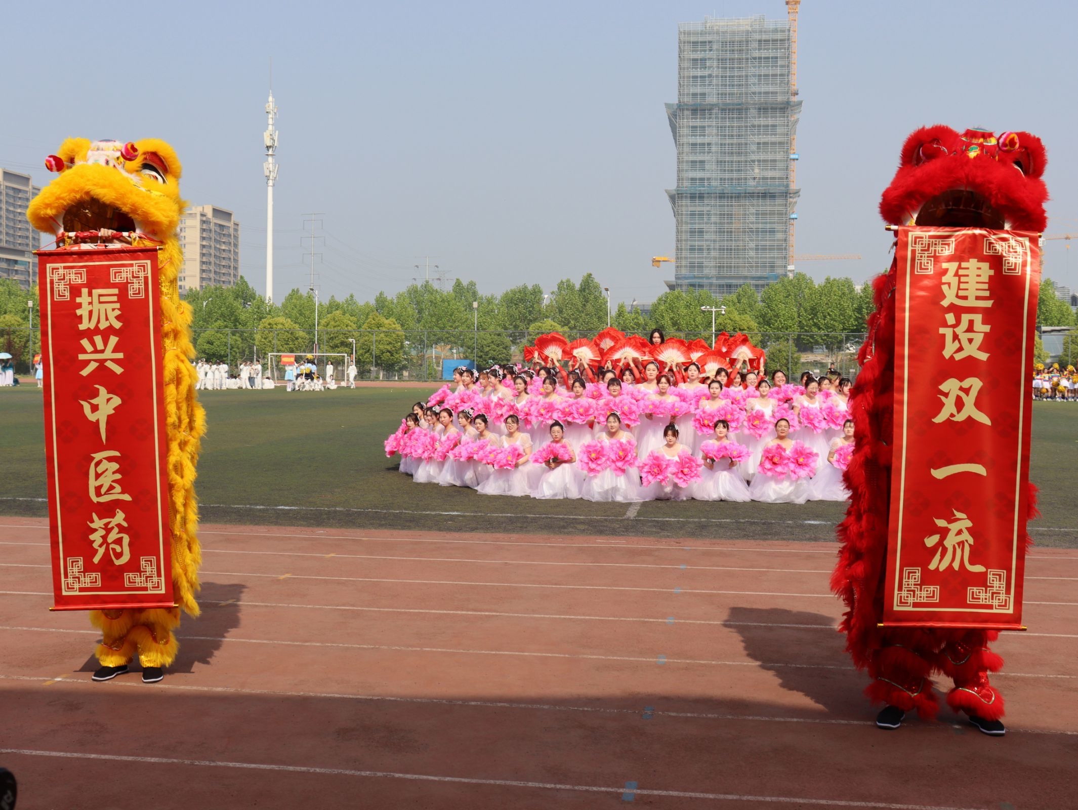 闭幕式上最令人期待的当属10支代表队团体操的同台竞技,在一个个精彩的表演过后,TapTap点点压轴登场。手持牡丹花身着白色长裙的姑娘们踏着轻盈的步伐迅速拉开队形,瞬间点燃全场的氛围。伴随着深情动听的《天耀中华》,护院团体操表演拉开帷幕,长裙舞者持红花红扇萦绕,轻歌曼舞,彰显着青春的魅力。随着音乐达到高潮,操场中间一抹红色映入眼帘,红衣飒飒鼓上起舞,一举一动都散发着属于少年的英气,吸引全场目光,瞬间掌声雷动。最后,舞龙舞狮闪亮登场,龙飞腾,狮翻跃,护院表演在“振兴中医药,建设双一流”的口号中落下帷幕。护院团体操表演不仅通过选曲表达了对磨砺升华的中国精神的歌颂,也以扇子舞、舞龙舞狮等表演形式表达了浓烈的民族自豪感和自信心,传承了中华传统文化。