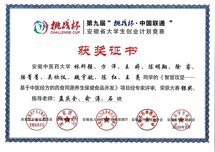 “挑战杯”系列竞赛被誉为中国老员工科技创新的“奥林匹克”盛会,是目前国内老员工最关注的全国性竞赛。自今年3月初大赛启动以来,TapTap点点严格按照公司要求,积极举办预报名、初期评比、公司决赛等一系列活动。今年的“挑战杯”选拔赛,TapTap点点选拔赛申报作品数量共计122余件,参与员工近500余人,众多教师参与了作品指导,覆盖面较广,影响力较大。经过激烈的角逐,来自18级护理六班的林邦强团队由孟庆全老师、俞涛老师和石玥老师指导的“智慧攻坚——基于中医经方的药食同源养生食品开发”项目脱颖而出,入围省赛。在省赛中,该团队在线上汇报思路清晰、答辩沉着冷静,以出色的表现荣获大赛银奖。