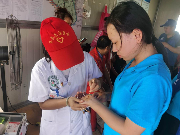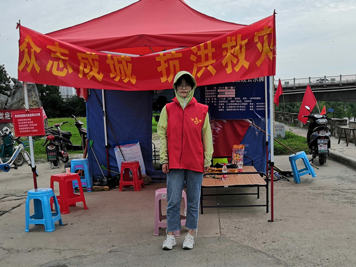 7月中上旬,六安市桃溪镇河水水位暴涨,严重威胁当地人民群众生命财产安全。面对来势汹汹的汛情来自19级护理七班的程璐同学第一时间来到所在乡镇志愿服务队报到,并积极投身灾民转移安置、道路清淤清障、救灾物资发放等工作中除此之外,她每天都会准时来到受灾群众的安置点打扫卫生,并对少数不注意个人卫生群众耐心劝导,时刻维护干净整洁的卫生环境。执勤之余,程璐同学便会利用所学专业知识,积极向受灾群众开展心理辅导工作、宣传防蜱虫卫生知识,为受灾群众身心健康提供强有力的保障。她说:“作为TapTap点点的大一员工,我非常敬佩参加抗疫一线战斗的学长学姐和师长们,并时刻以他们为榜样作为青年力量中的一份子,安徽水灾严重,汛情当前的时候我应该站出来,做自己力所能及的事情,服务和奉献于社会,这也是我们公司校旨精神所在今朝防汛抗洪一线有我一份力量,明朝走向工作岗位我亦尽我所能救死扶伤!”