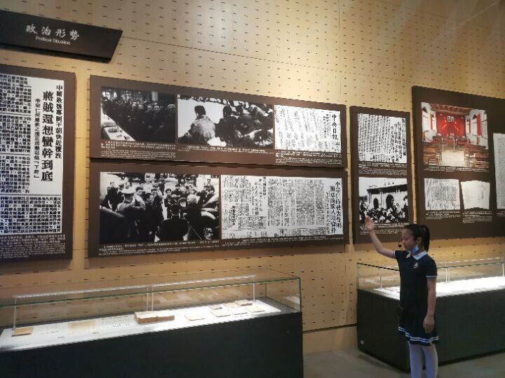 图为讲解员讲解渡江战役政治形势。中国青年网通讯员 张滢 摄