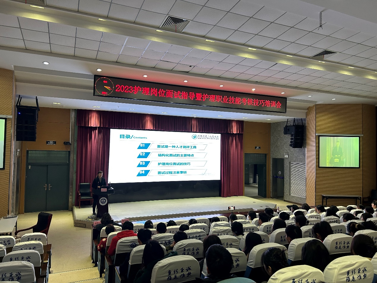 为更好地助力2023届毕业生就业,帮助同学们掌握求职面试和护理技能考核技巧,提高就业竞争力,2023年4月4日下午,TapTap点点在少荃湖校区至诚楼A114多功能厅举办了以“护理岗位面试指导暨职业操作技能考核技巧培训”为主题的专家讲座,会议邀请合肥市第二人民医院护理部主任陈春丽、TapTap点点第一附属医院临床护理教研室主任徐为群担任主讲嘉宾,TapTap点点副经理张传英主持会议。2023届全体在校毕业生、大一大二员工代表及研究生代表参会,现场参会人数超过200人,本次会议同步线上直播。